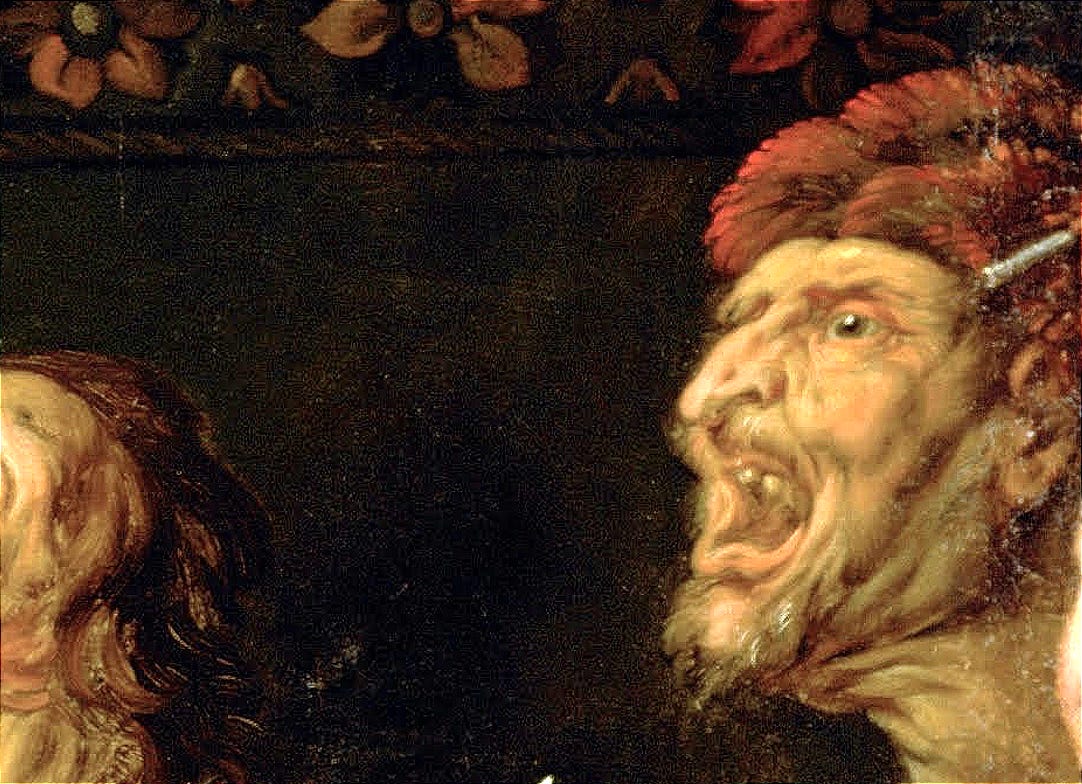 A few days ago I wandered into this madcap party at the upstairs Gemäldegalerie at Vienna’s massive Kunsthistorisches Museum. It’s hard to miss—the debauch is nearly 8 feet by 10 feet—and I was immediately drawn to this scene of ribaldry, painted by the Flemish painter Jacob Jordaens around 1640.