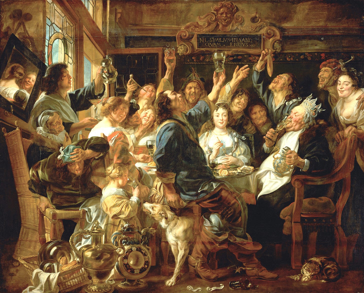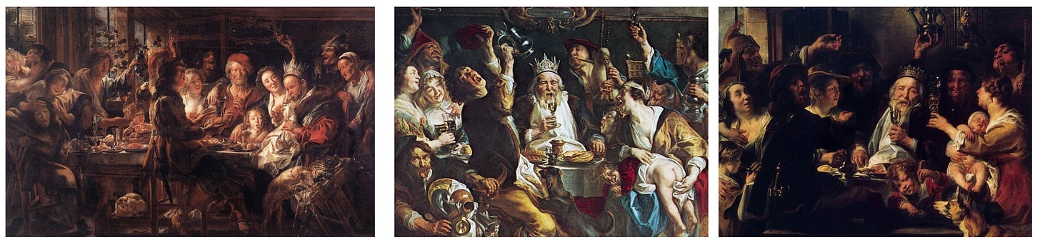 Jordaens was basically the Bob Ross of Twelfth Night scenes—he painted at least six variations of this scene over the years. Others are in the collections of prominent museums like the Hermitage in St. Petersburg.